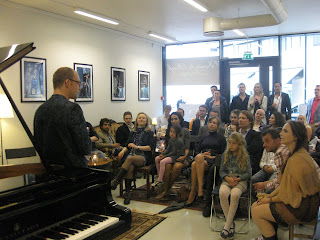 A full house for Nils Georg Haugland Nilsen - tenor, Sam Nester - trompet, Ingunn Elisabeth Tennøe, Heegan Lee and Aksel Kolstad - piano/host